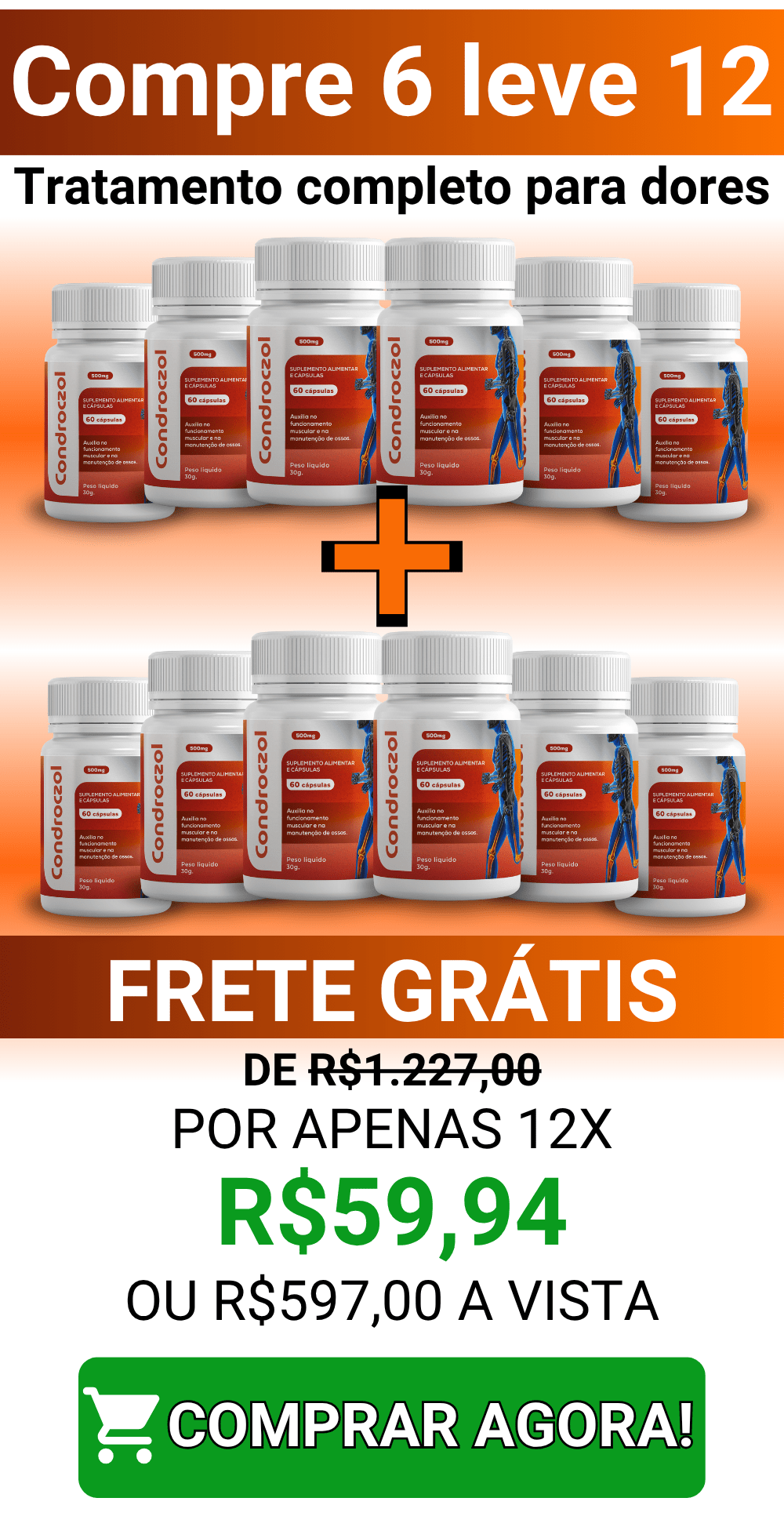 Absolutamente nenhum! Quando você compra o Condroczol, garantimos frete expresso 100% grátis, independente da quantidade de unidades ou de onde você esteja no mundo. Você nunca pagará nada além do valor do produto — zero taxas escondidas, zero surpresas. Nossa prioridade é garantir que seu pedido chegue até você rápido e sem custos adicionais, porque acreditamos que sua saúde não pode esperar!